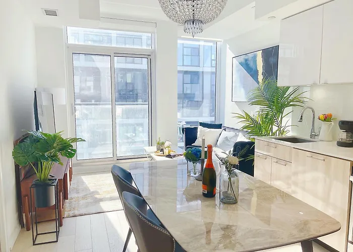 Boutique Penthouse-Live In The Sky With Amazing Lakeview Dt Toronto Infivilla apartment is equipped with self-catering amenities such as an electric kettle, a refrigerator, and kitchenware, providing guests with the opportunity to prepare their own meals. The nearest underground station is Dundas, merely 1 km away.